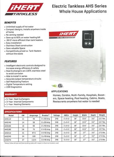 We offer tankless Water Heaters in the models seen below. We hope you enjoy our site and take a moment to drop us a line.